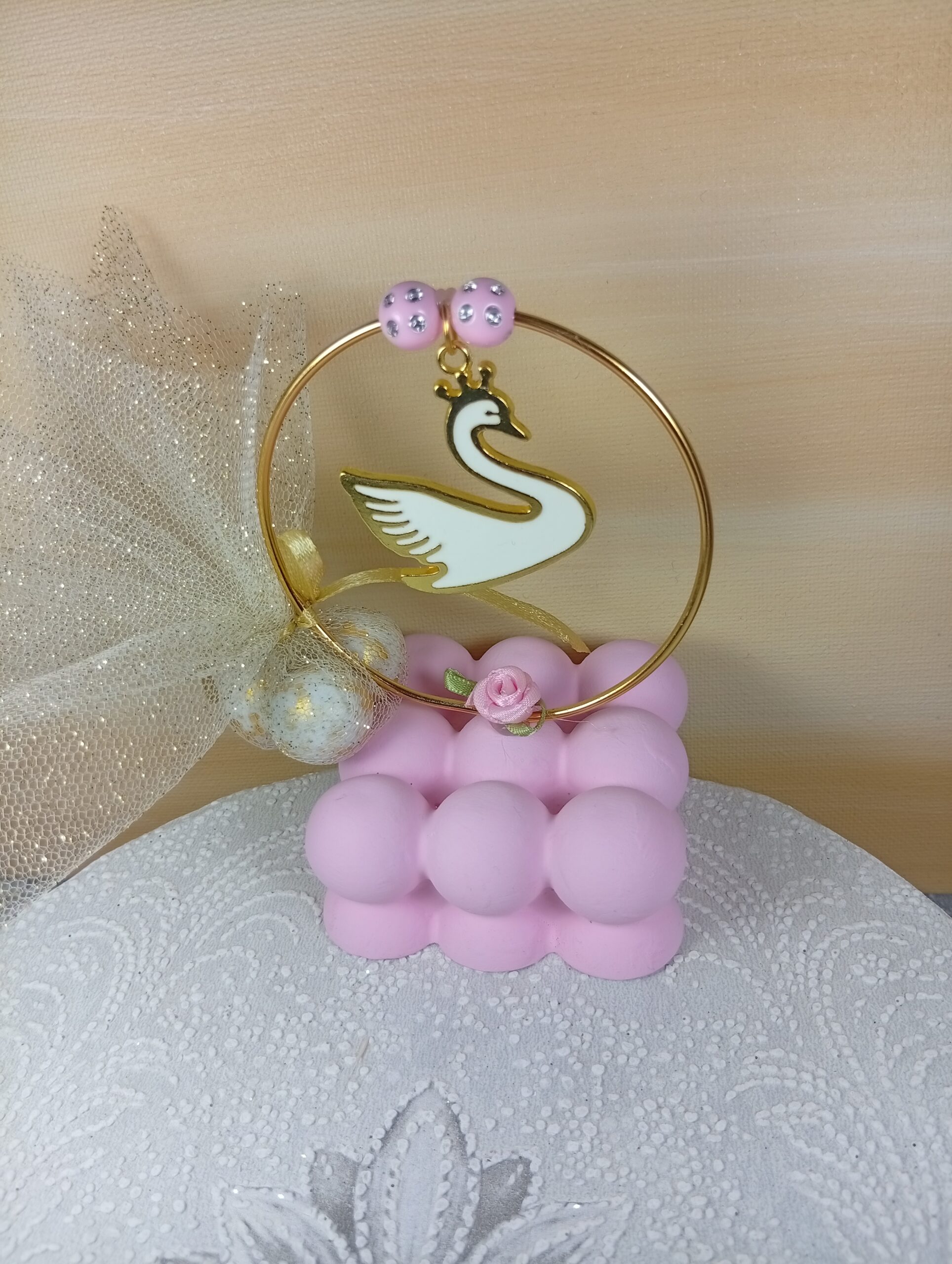 Μπομπονιέρα βάπτισης κύκνος με σμάλτο σε τεχνητό βότσαλο.