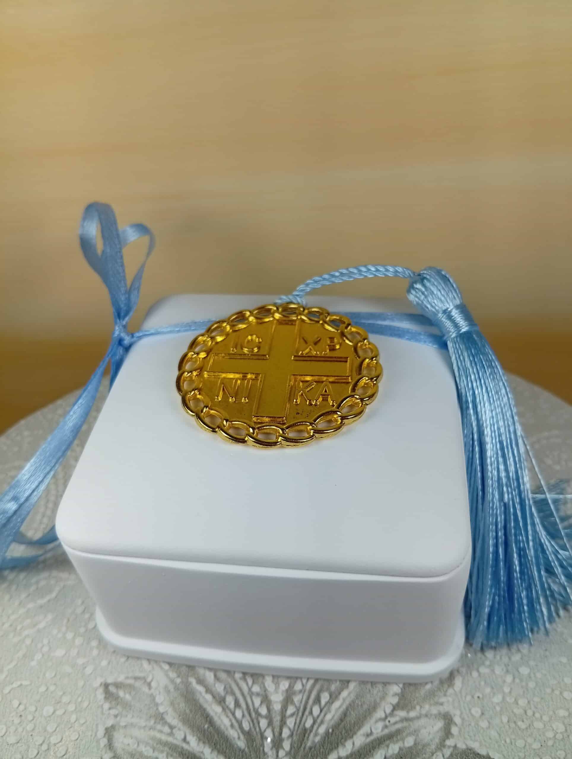 Μπομπονιέρα βάπτισης , γάμου,τετράγωνη με Κωνσταντινάτο.