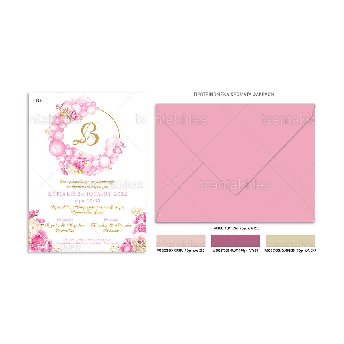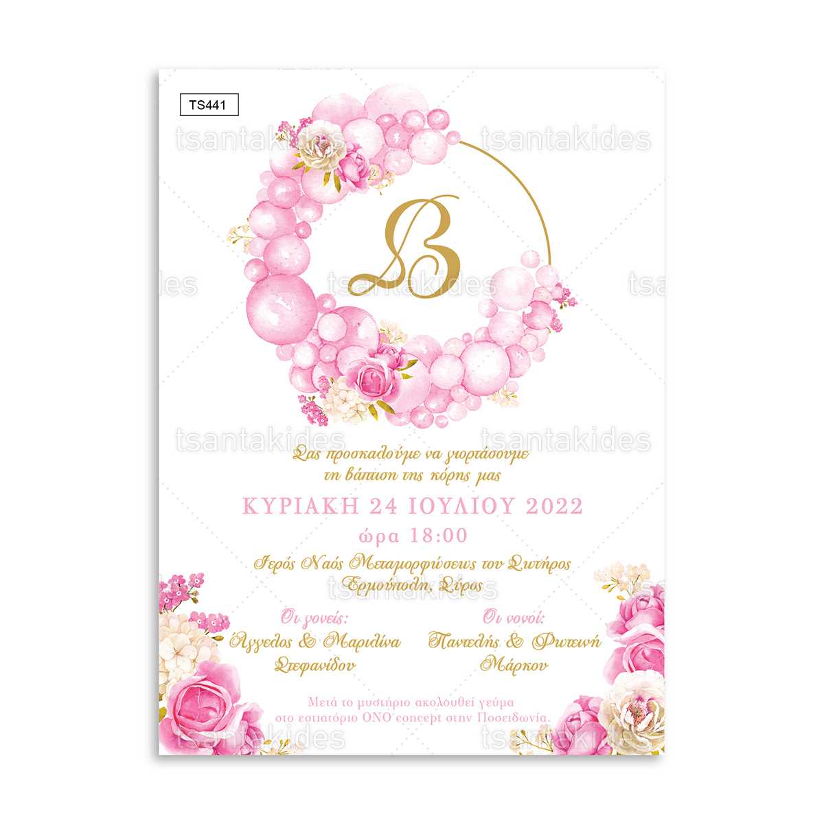 πρόσκληση βάπτισης με αρχικό και μπαλόνια
