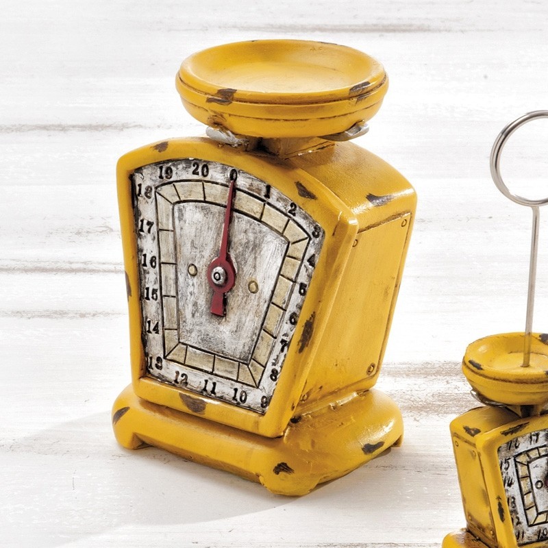 Vintage πολυεστερικός κουμπαράς σε σχήμα ζυγαριάς και κίτρινο χρώμα.