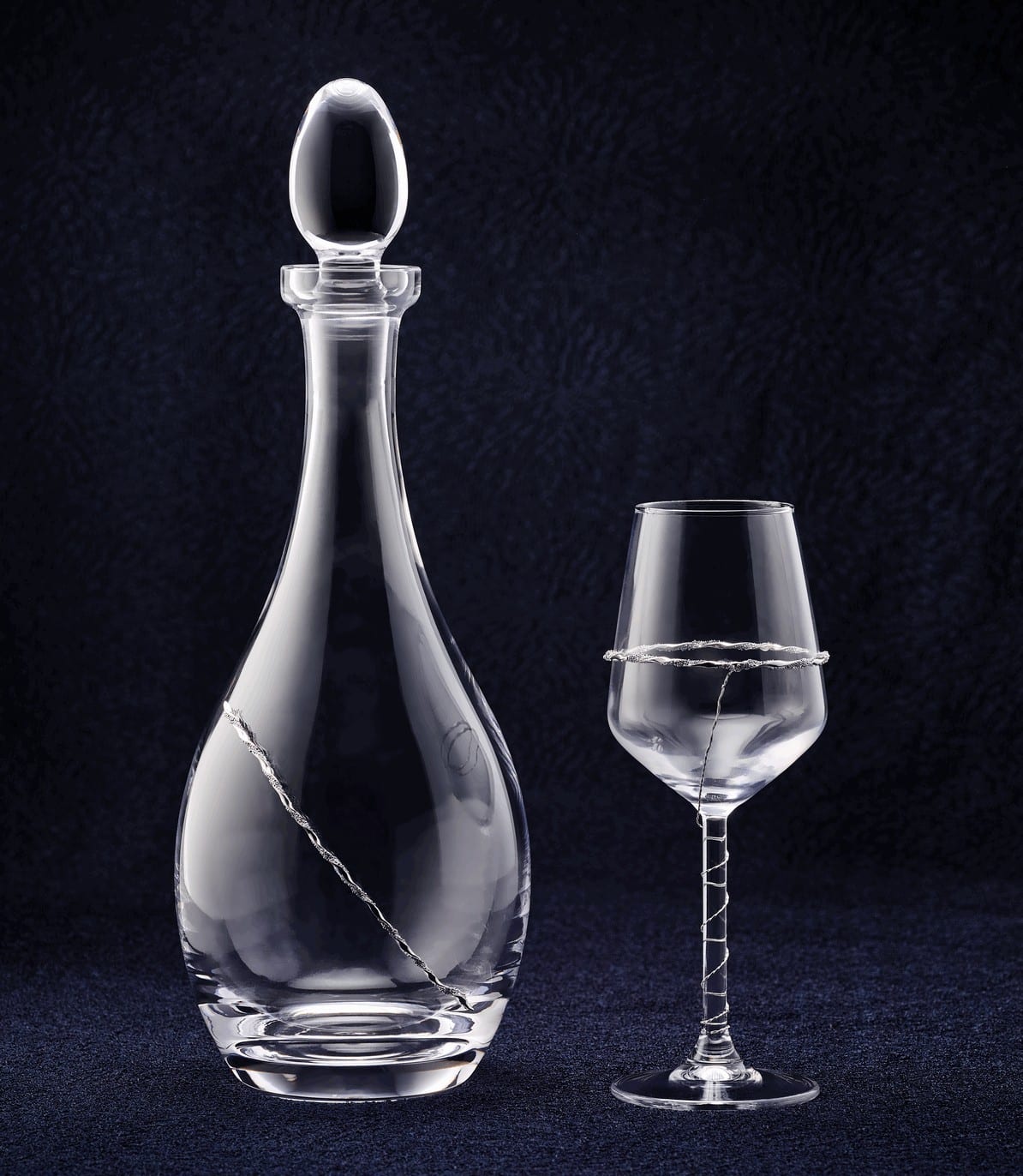 Σετ κουμπάρου που περιλαμβάνει ποτήρι – καράφα. Ο στολισμός που υπάρχει επάνω στο σετ αν επιθυμείτε υπάρχουν και τα ανάλογα στέφανα.