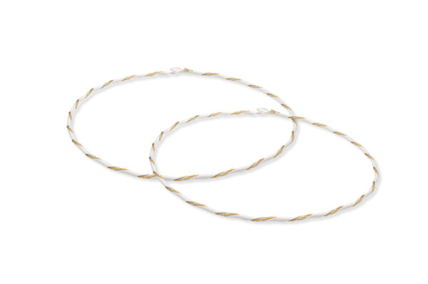 Στέφανα γάμου επάργυρα. Η βάση από τα στέφανα είναι λευκό σμάλτο και είναι πλεγμένα με επίχρυσο κορδόνι .