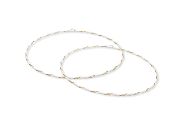 Στέφανα γάμου επάργυρα. Η βάση από τα στέφανα είναι λευκό σμάλτο και είναι πλεγμένα με επίχρυσο μεταλλικό σύρμα.