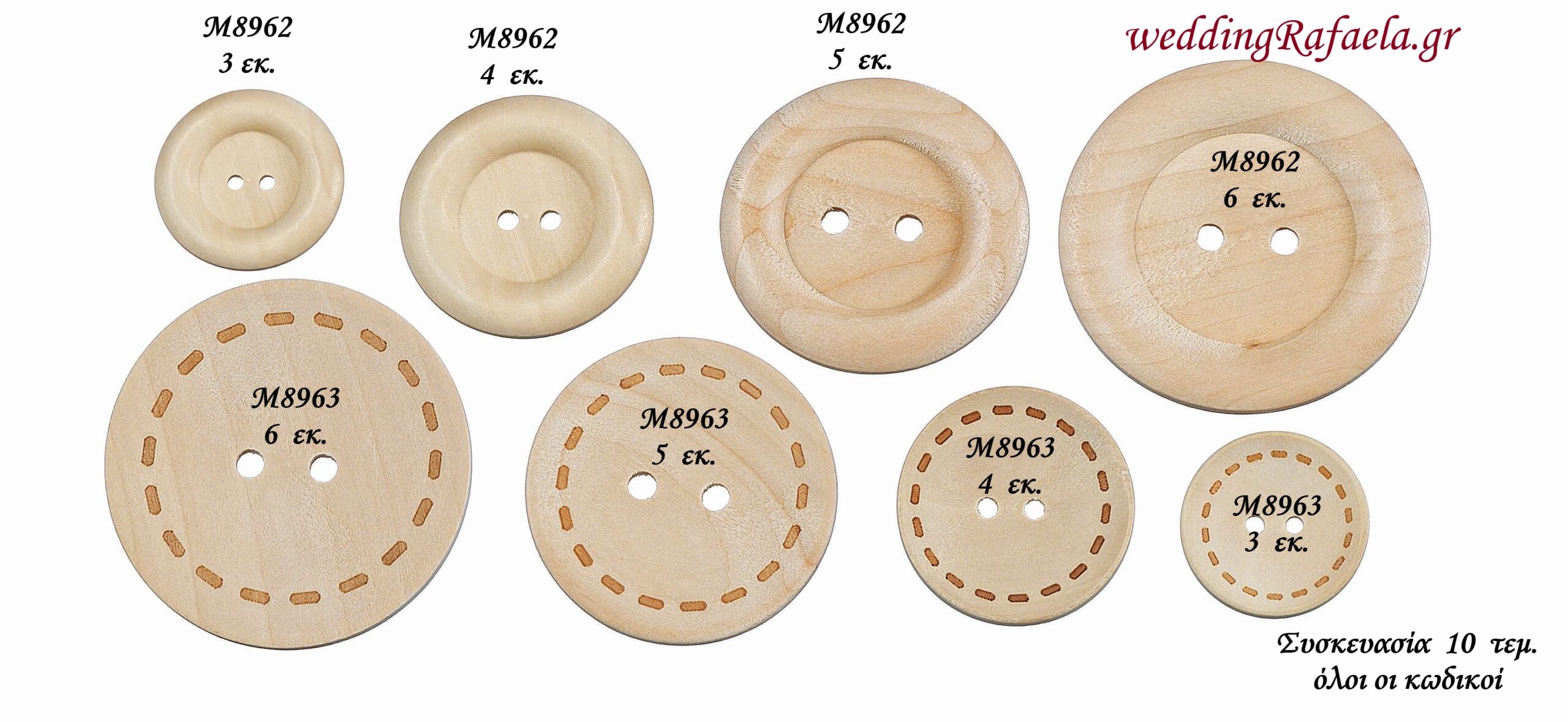 Ξύλινα κουμπιά σε φυσικό χρώμα, για διακόσμηση της μπομπονιέρας σας.