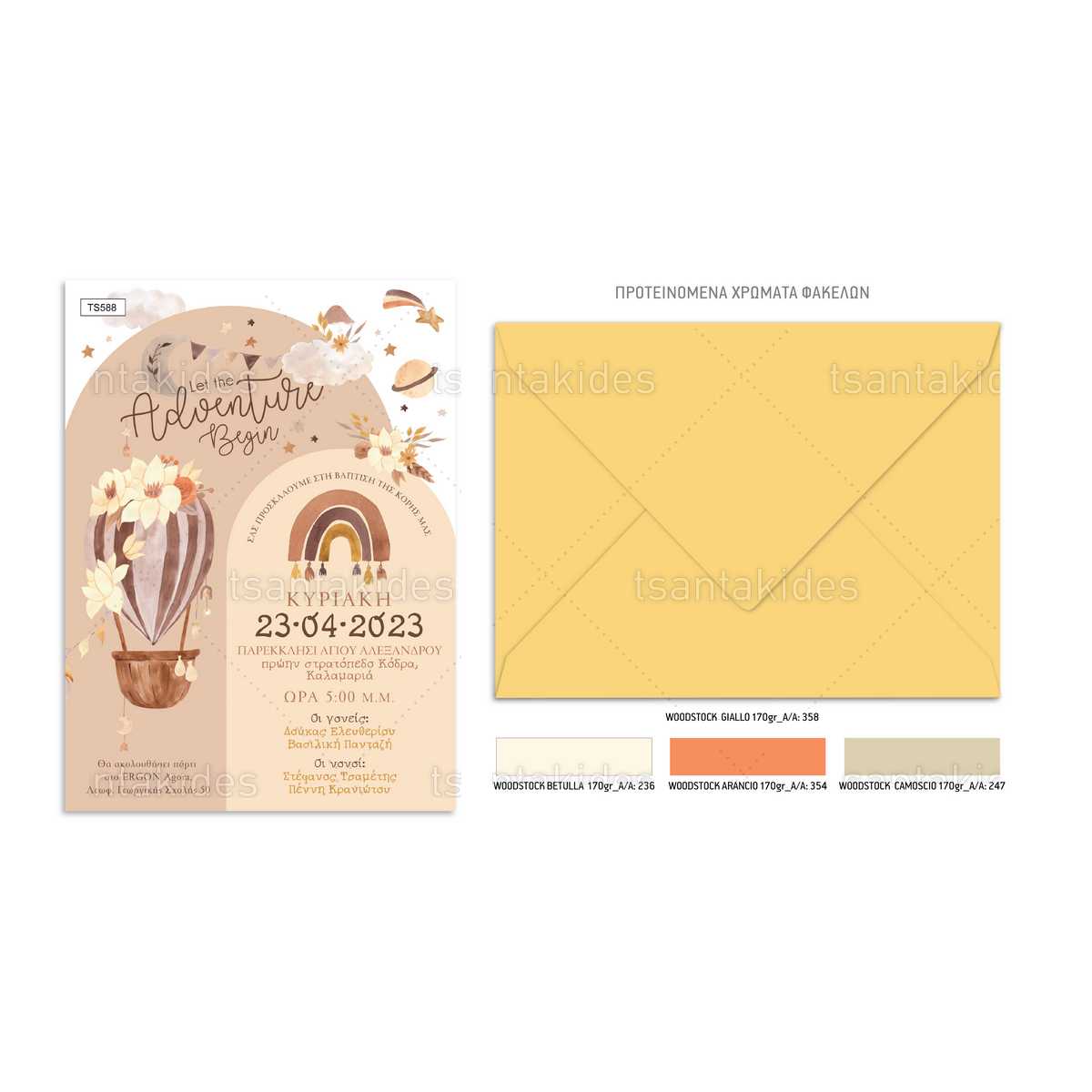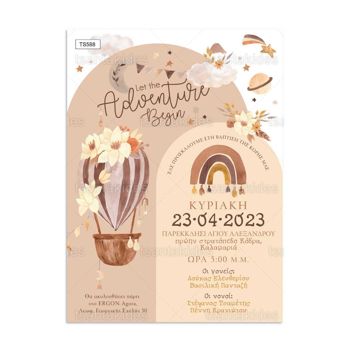 πρόσκληση βάπτισης αερόστατο ουράνιο τόξο