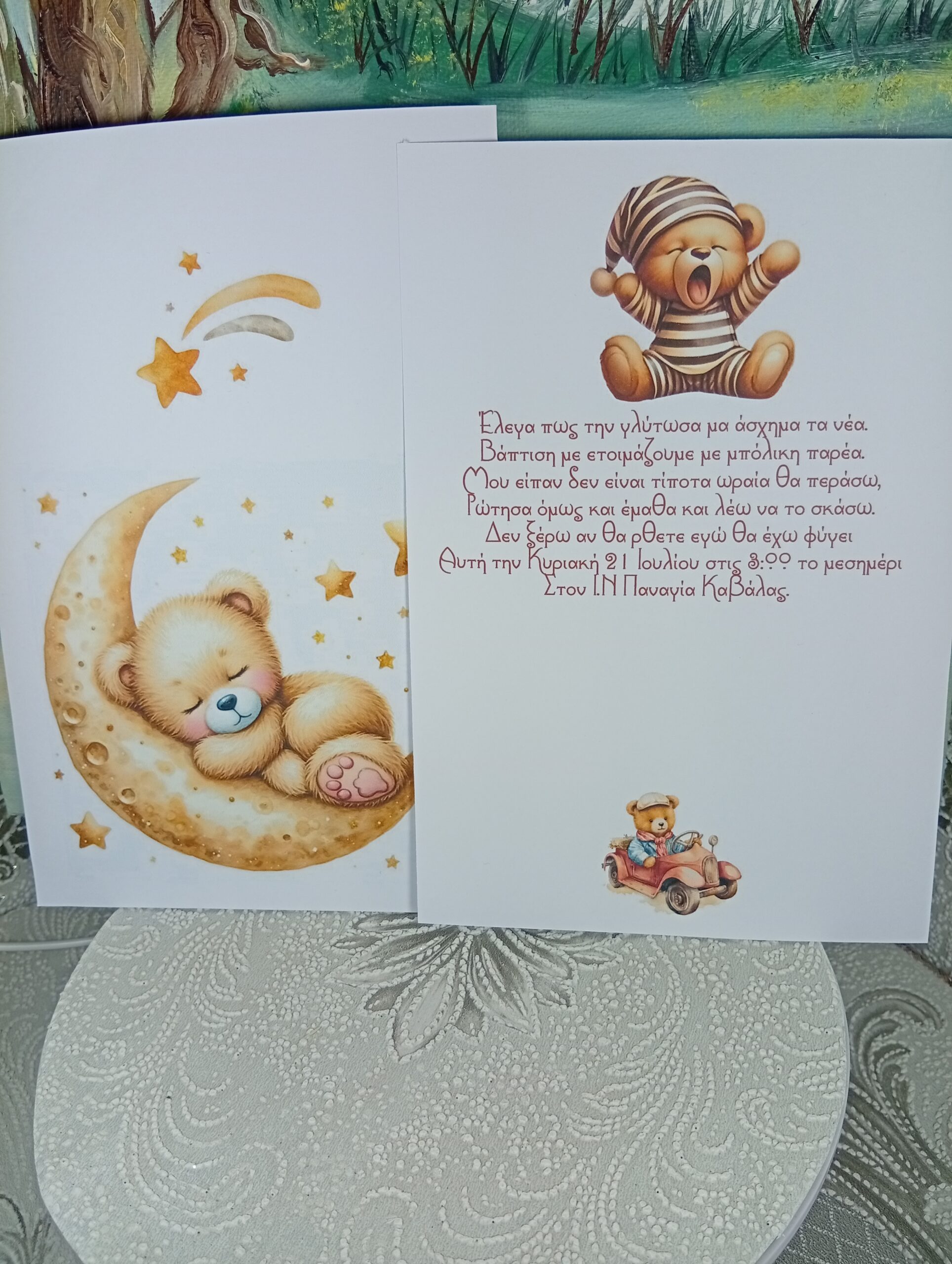 πρόσκληση βάπτισης αρκουδάκι