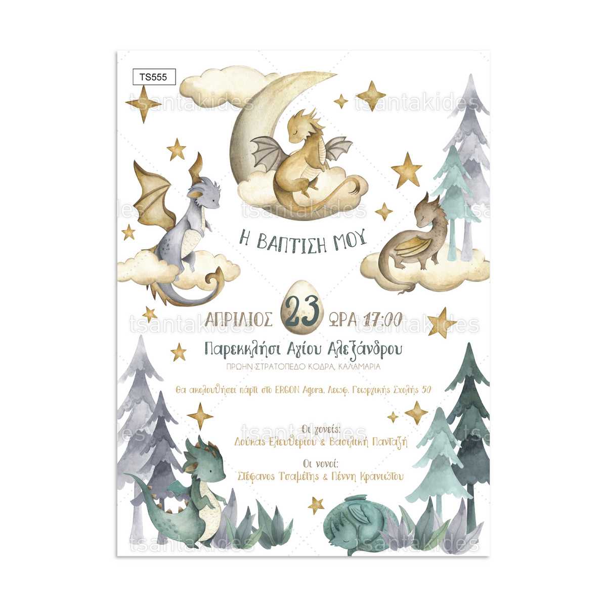 πρόσκληση βάπτισης δράκοι