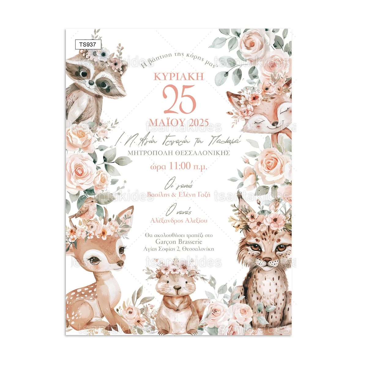 πρόσκληση βάπτισης ζωάκια του δάσους