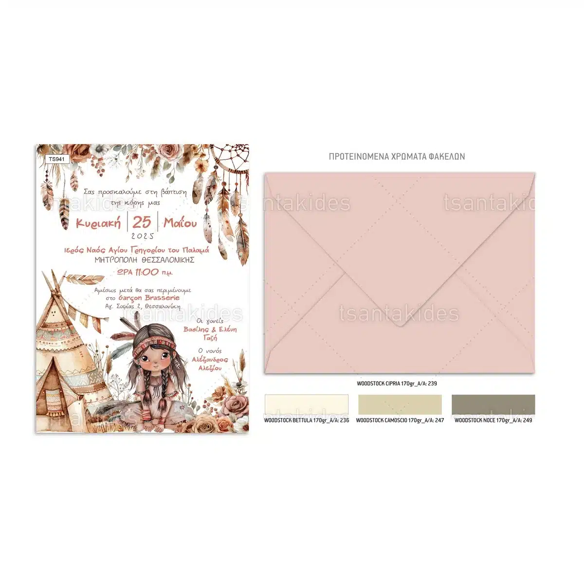 πρόσκληση βάπτισης Ινδικό κορίτσι