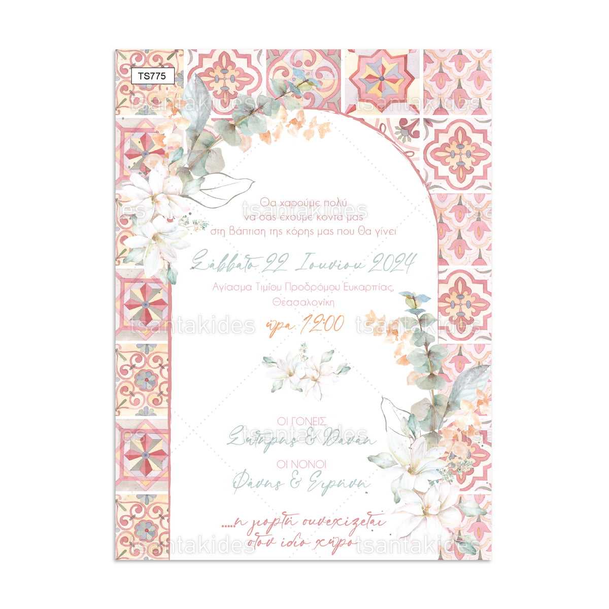 πρόσκληση βάπτισης λουλούδια