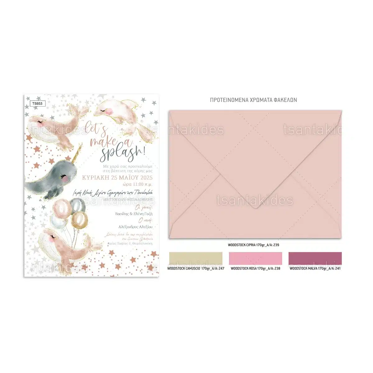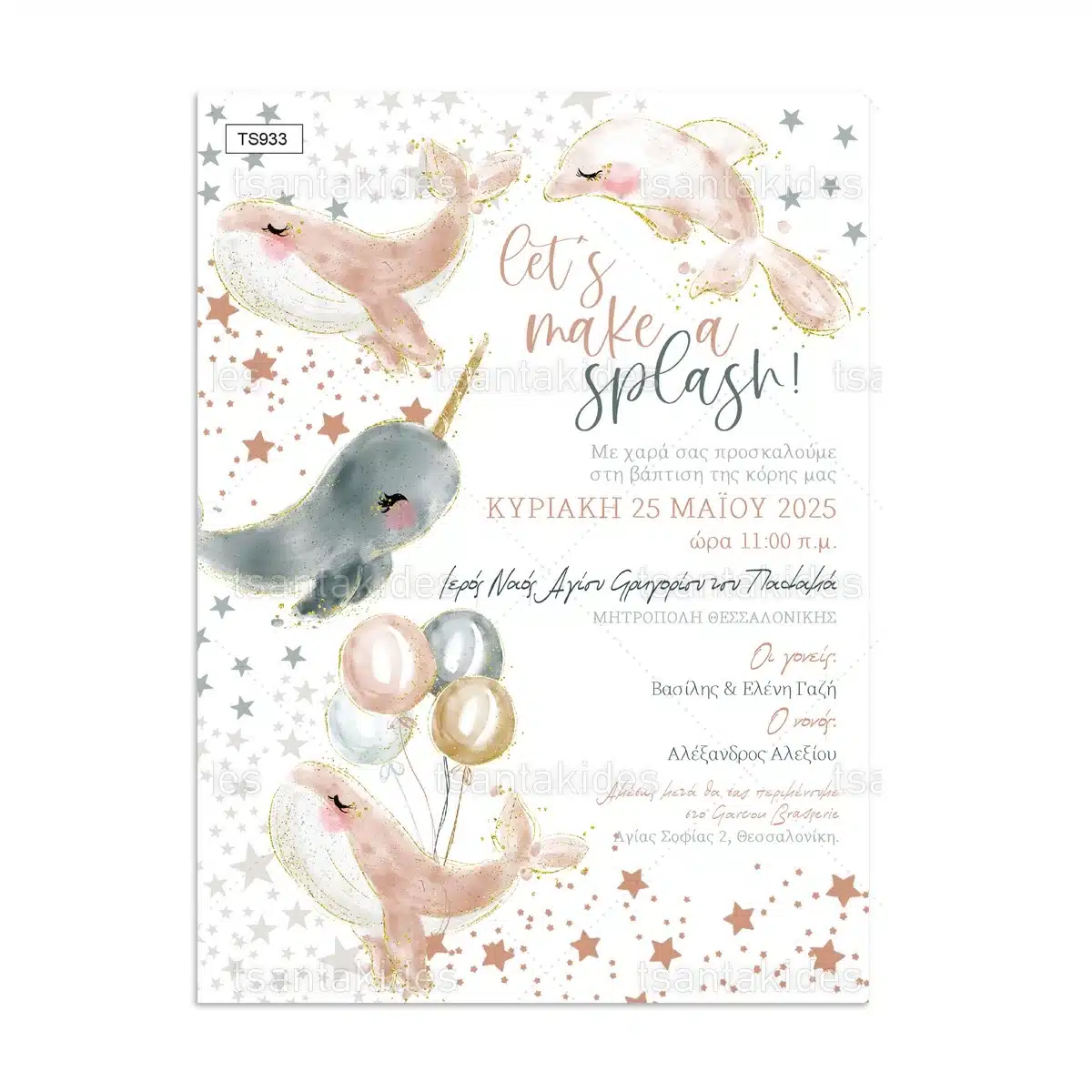 πρόσκληση βάπτισης μπαλόνια – φάλαινα