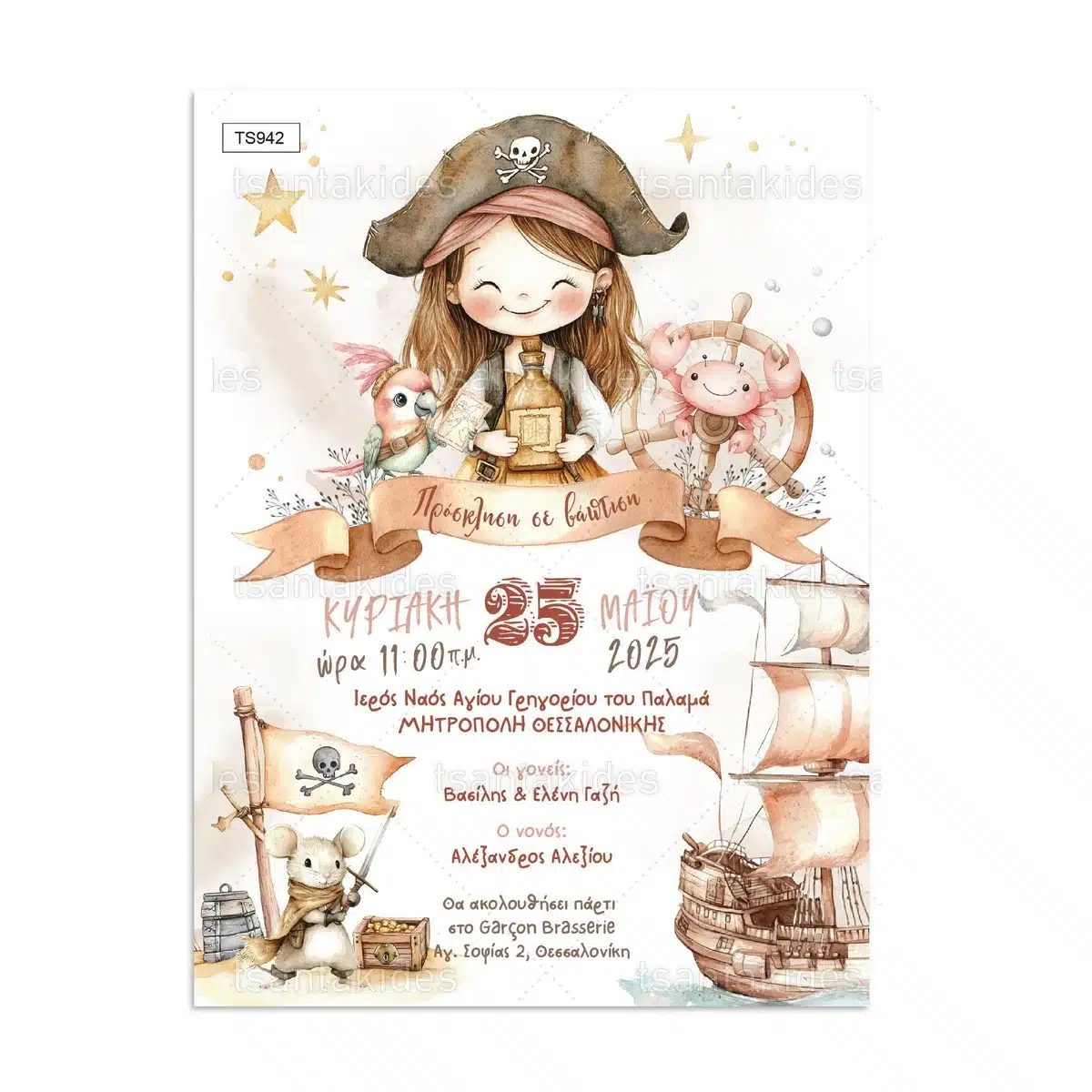 πρόσκληση βάπτισης Πειρατικό κορίτσι