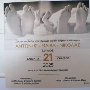 Προσκλητήρια γάμου ,οι τιμές είναι για τεμάχια 111-210 ,όλες μας οι προσκλήσεις μπορούν να διαφοροποιήσουν το κόστος τους με επιλογή δική σας, υπάρχει δυνατότητα αλλαγής χαρτιού, διακόσμησης. Μπορούμε να αφαιρέσουμε διακοσμητικά αλλά και κορδέλες στο γούστο το δικό σας, επίσης αλλάζει η τιμή σε περισσότερα η και λιγότερα τεμάχια .Όλες οι προσκλήσεις μας δεν συμπεριλαμβάνουν την τιμή τις εκτύπωσης, διαφοροποιείται η τιμή με την επιλογή του πελάτη, υπάρχουν όλες οι επιλογές εκτύπωσης .Όλες οι προσκλήσεις γάμου κατασκευάζονται με χαρτιά πολυτελείας. Η τιμή αφορά το ένα τεμάχιο πρόσκλησης με τον φάκελο .Για περισσότερες πληροφορίες παρακαλώ μην διστάσετε να επικοινωνήσετε μαζί μας.