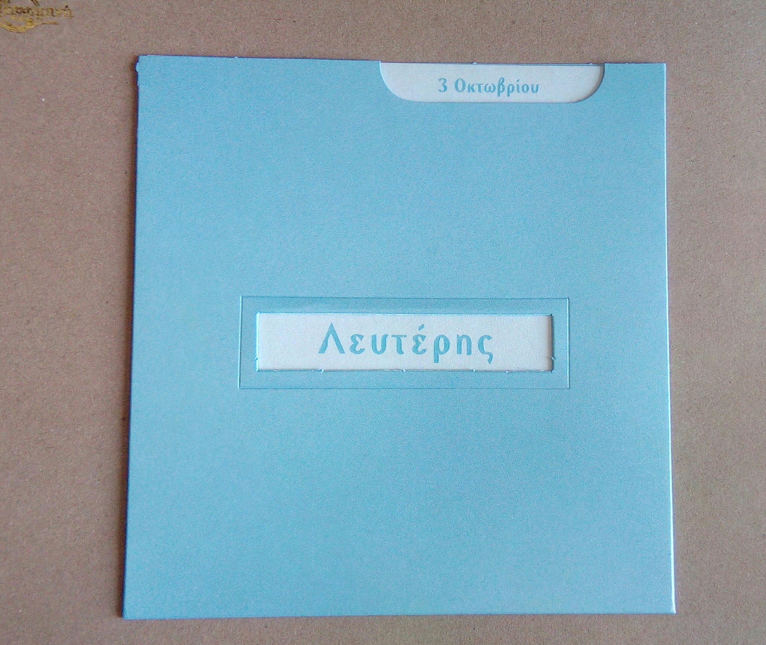 Πρόσκληση με κοπτικό στο όνομα και στην ημερομηνία,με χαρτί πολυτελείας,στην τιμή δεν συμπεριλαμβάνετε η εκτύπωση,είναι στην διάθεσή σας όλες οι επιλογές εκτύπωσης,όπως και χρωματολόγιο.
