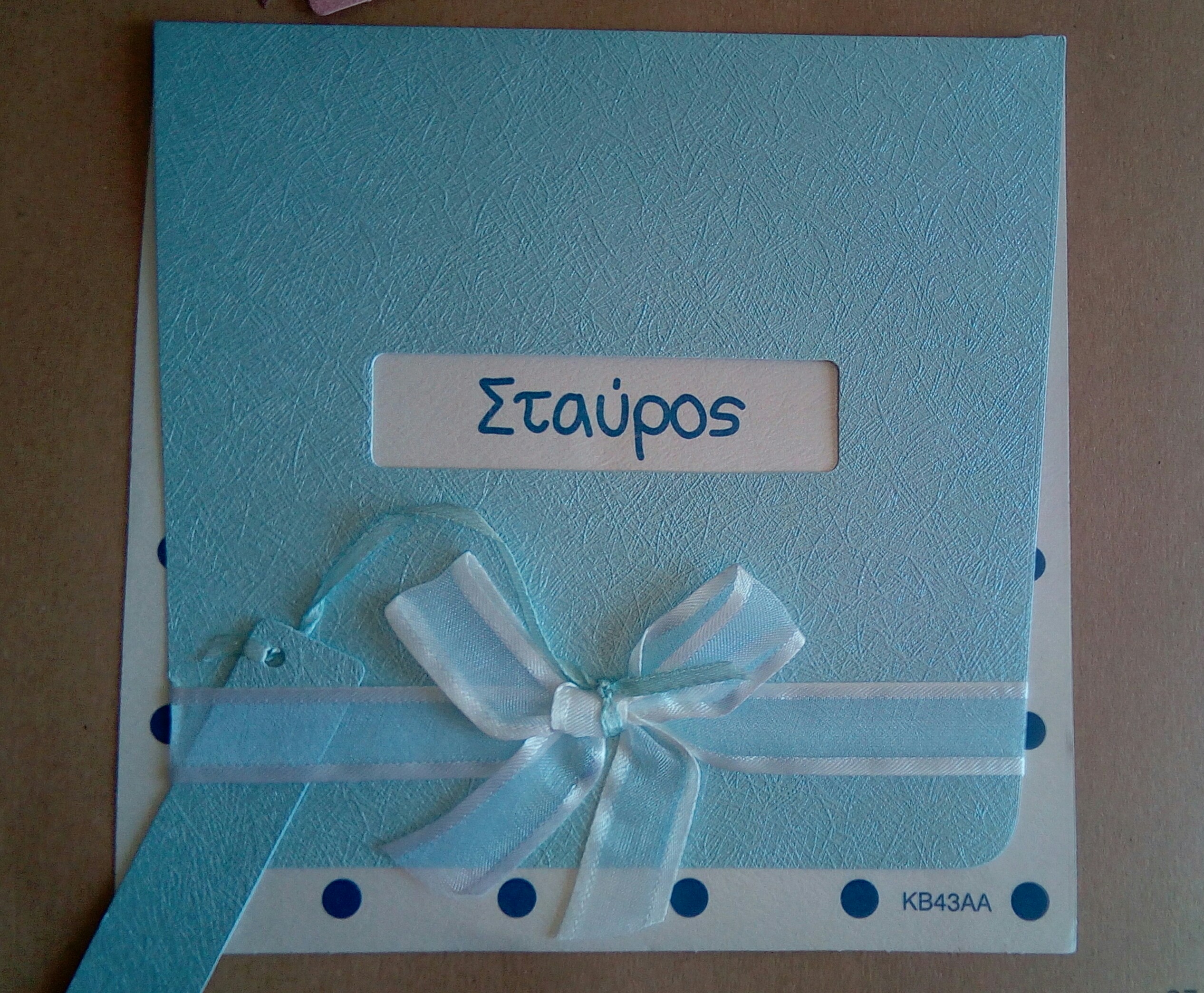 Πρόσκληση με κοπτικό στο όνομα,με χαρτί πολυτελείας,στην τιμή δεν συμπεριλαμβάνετε η εκτύπωση, είναι στην διάθεσή σας όλες οι επιλογές εκτύπωσης,όπως και χρωματολόγιο.