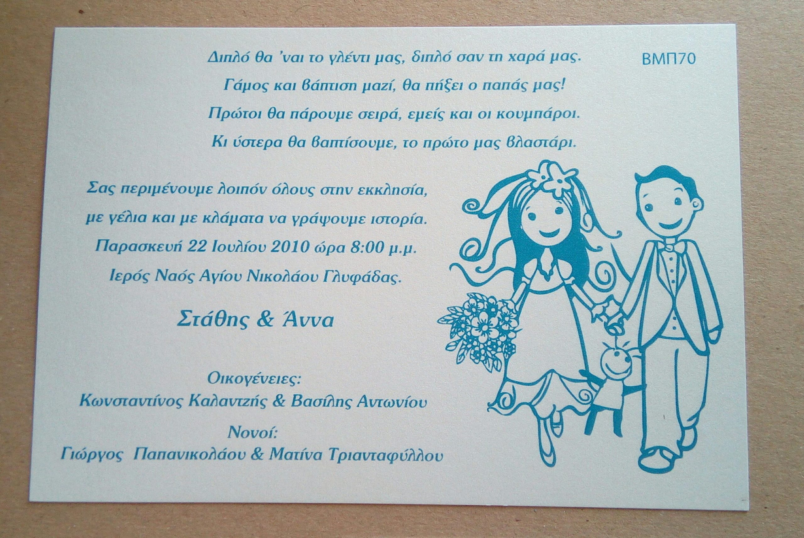 Πρόσκληση γάμος- βάπτιση σε μεταλλιζέ χαρτί,με απλό σιέλ φάκελο,στην δεν τιμή συμπεριλαμβάνετε η εκτύπωση,είναι στην διάθεσή σας όλες οι επιλογές εκτύπωσης όπως και χρωματολόγιο.