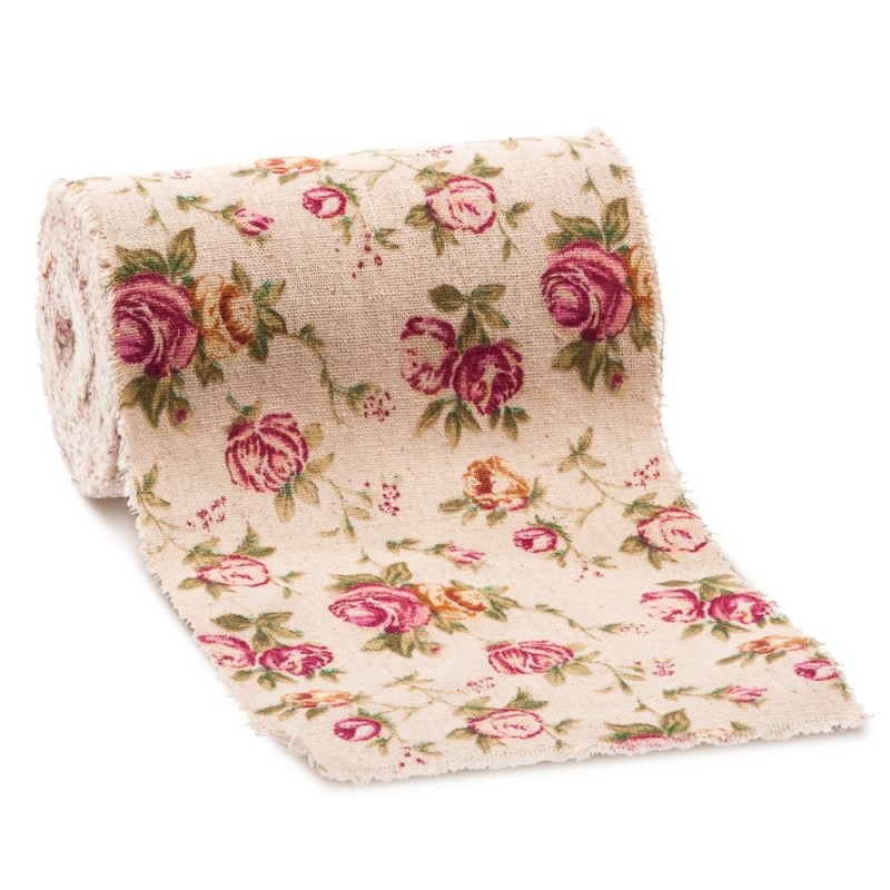 Ρολό από natural λινάτσα print floral με τριαντάφυλλα