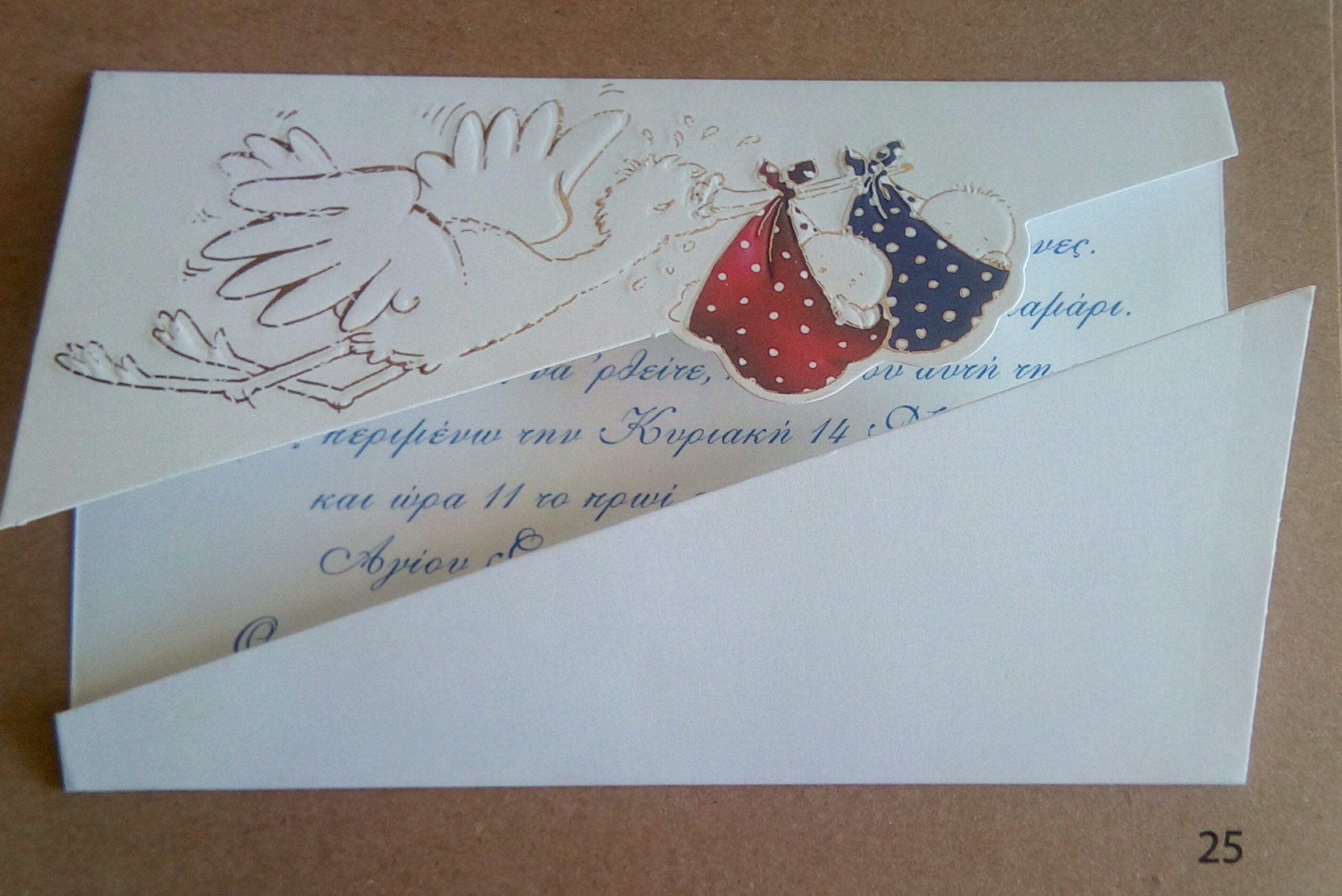 Πρόσκληση με πελαργό,ο φάκελος από απλό χαρτί λευκό,στην τιμή δεν συμπεριλαμβάνετε η εκτύπωση.