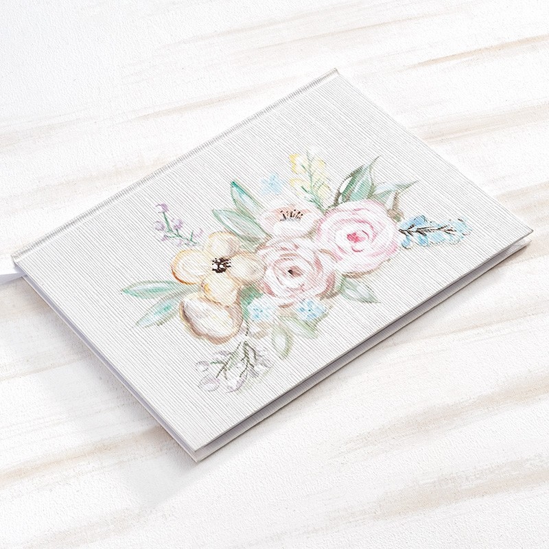 Βιβλίο ευχών λευκό εξωτερικά από χοντρό χαρτόνι,ζωγραφισμένο στο χέρι με πολύχρωμη σύνθεση λουλουδιών.