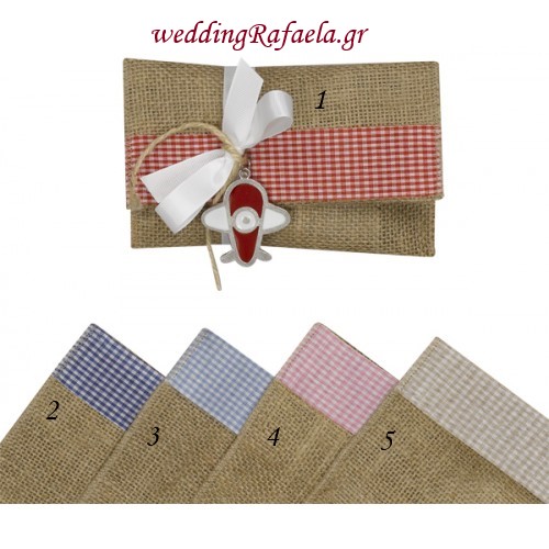 Φάκελος λινάτσα σε διάφορες αποχρώσεις,στην τιμή δεν συμπεριλαμβάνονται τα αντικείμενα και οι κορδέλες.