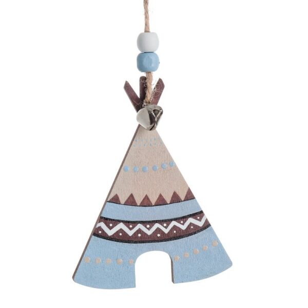 Ξύλινη κρεμαστή ινδιάνικη σκηνή σε χρώμα καφέ και σιελ, διακοσμημένη με χάντρες και μεταλλικό κουδουνάκι. Ιδανικό για διακόσμηση.