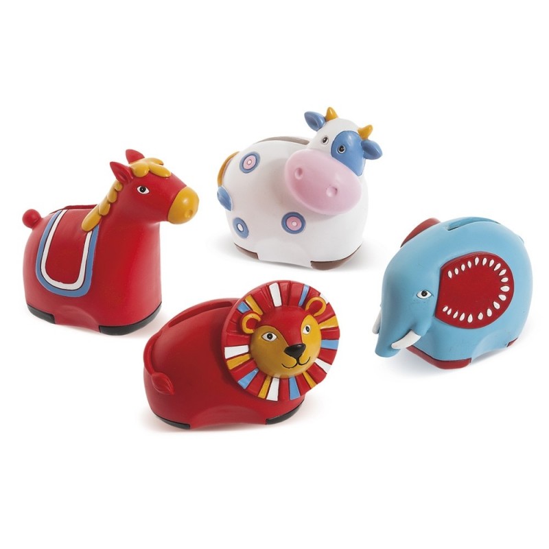 Πολυεστερικός παιδικός κουμπαράς με πολύχρωμα ζωάκια. Ο κωδικός περιλαμβάνει 4 σχέδια (άλογο, ελέφαντας, αγελάδα & λιοντάρι) Μπορεί να χρησιμοποιηθεί για στολισμό μπομπονιέρας βάπτισης ή ως μικρό δωράκι.