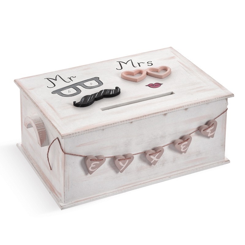 Ξύλινο παραλληλόγραμμο κουτί ευχών ζωγραφιστό με Mr & Mrs