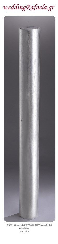 Στρογγυλή λαμπάδα με χρώμα πατίνα ασημί. Διαστάσεις : 15χ140 εκ.