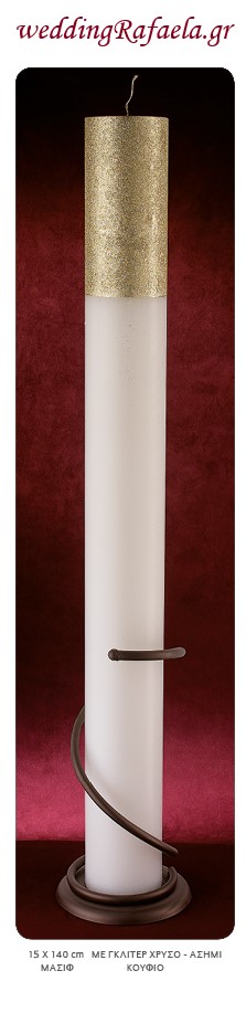Στρογγυλή λαμπάδα με γκλίτερ χρυσό η και ασημί. Διαστάσεις : 15χ140 εκ.