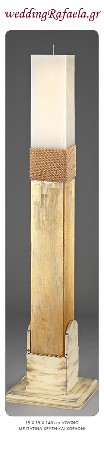 Τετράγωνη λαμπάδα με πατίνα χρυσή και κορδόνι.