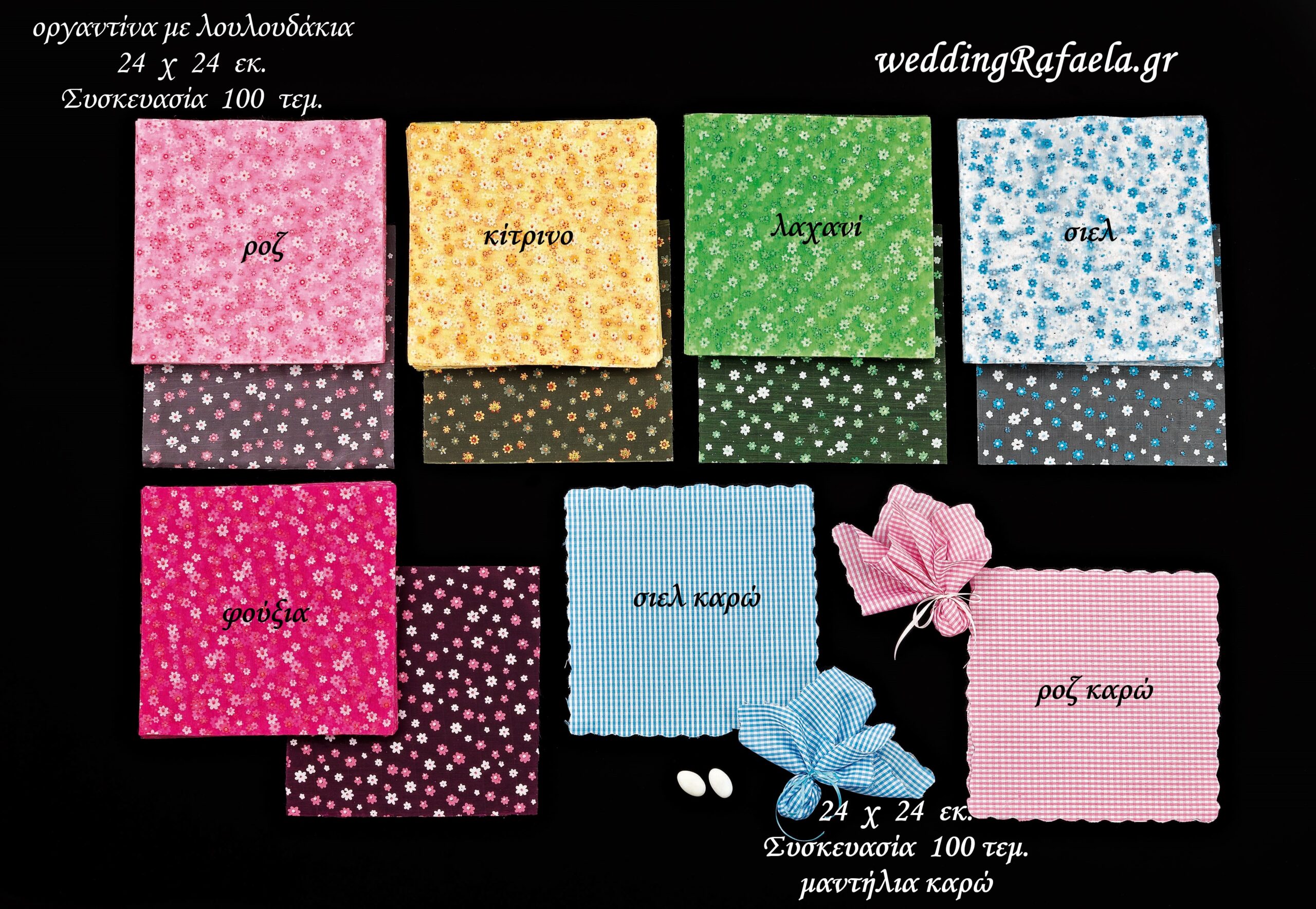 Οργαντίνα τετράγωνη με λουλουδάκια , συσκευασία 100 τεμ.