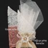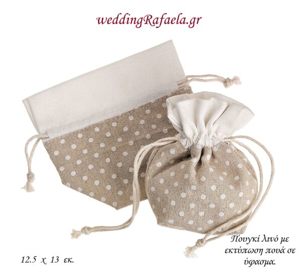 Πουγκιά μπομπονιέρα φυσικό με λευκό πουά.