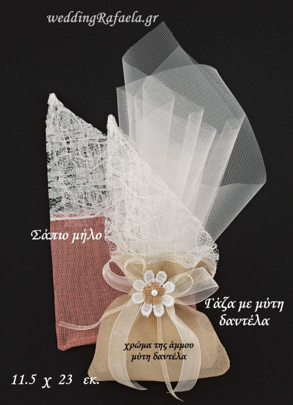 Πουγκιά μπομπονιέρας με γαζα και δαντέλα.