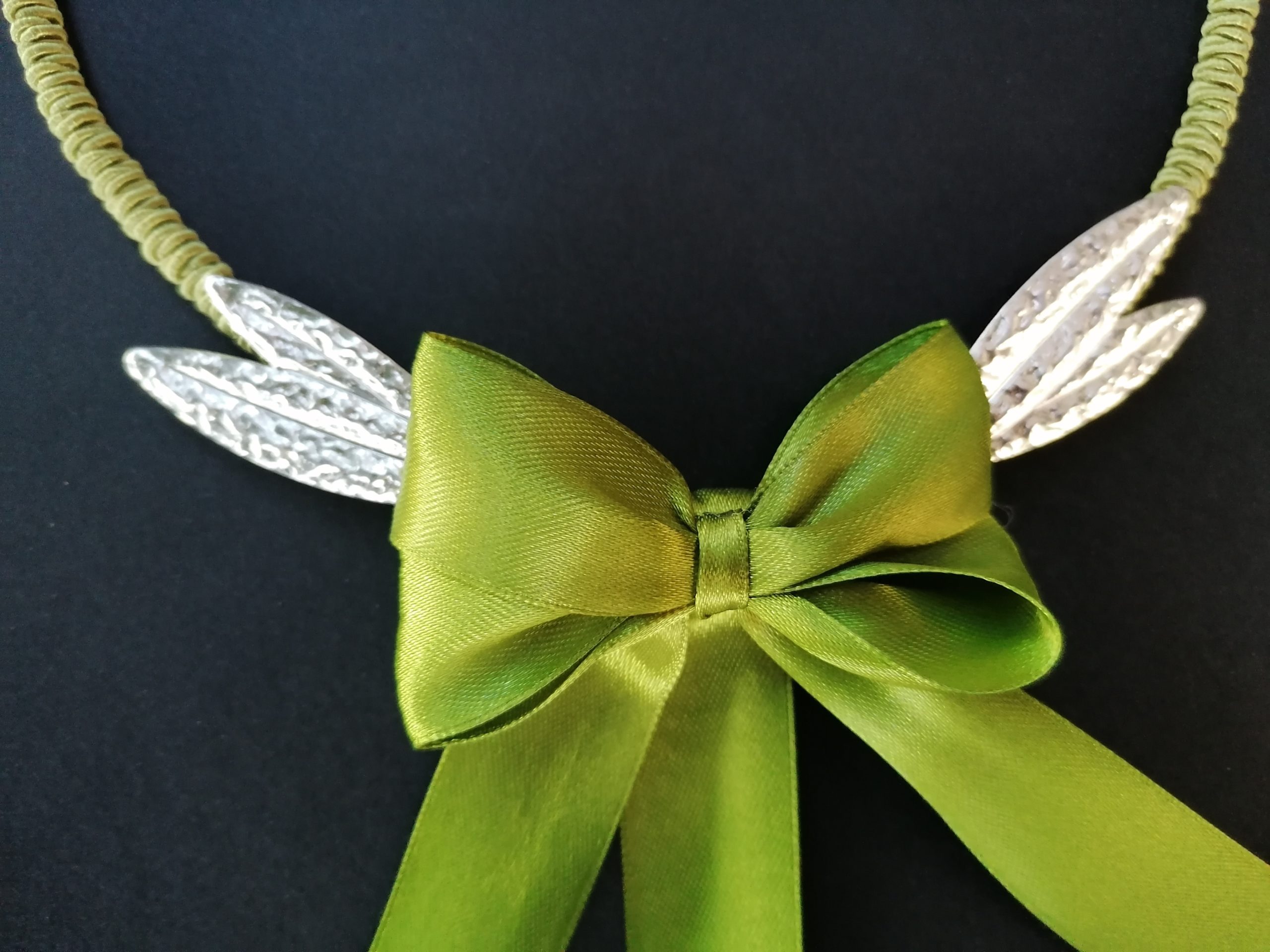 Χρόνος παράδοσης 10 εργάσιμες μέρες.Κατασκευασμένα με κορδόνι σατέν,κορδέλα σατέν,και σφυρήλατα φύλλα ελιάς αλουμινίου.